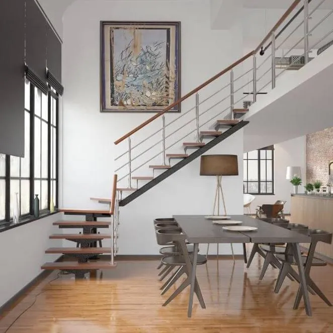Применение лестничной конструкции этого типа позволяет существенно экономить пространство.
