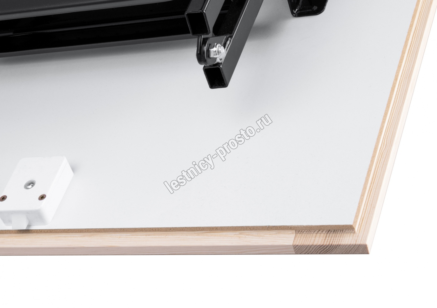 Лестница складная трехсекционная. Рабочая поверхность полностью выполнена из металла и покрашена порошковой краской. Термоизоляционная крышка типа "сэндвич", толщиной 30 мм, утеплена пенопластом, облицована с двух сторон ДCП белого цвета.