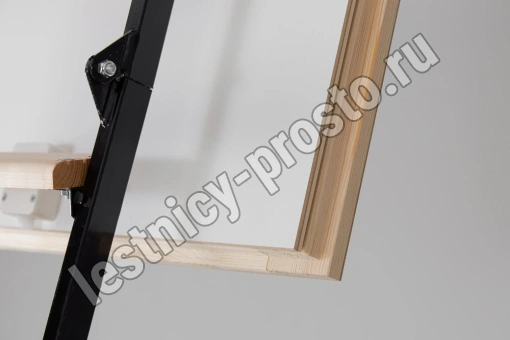 Складная 4-х секционная чердачная лестница. Ступени выполнены из сосны, имеют противоскользящие насечки, направляющие из металла.