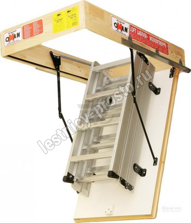 Чердачная лестница алюминиевая с люком OMAN ALU PROFI LITE LONG 70х120 см, h-350 см