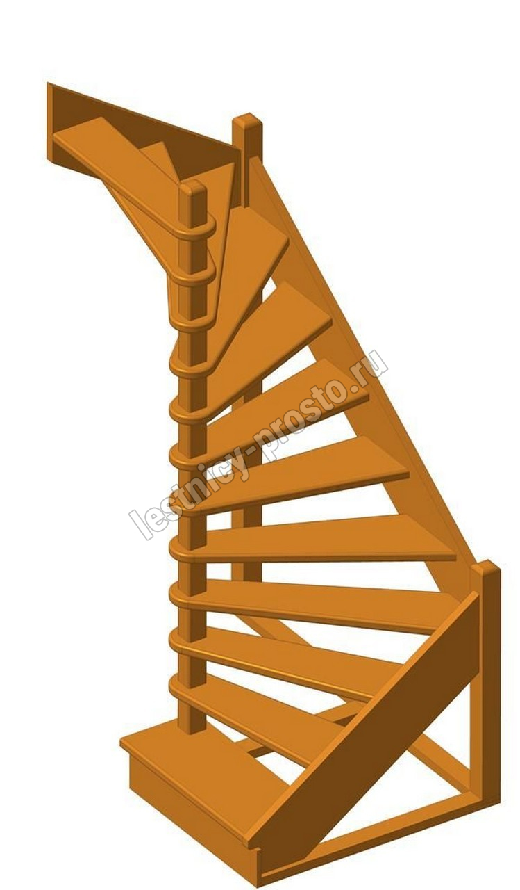 Деревянная межэтажная лестница ЛЕС-01 2340-2540 проем 1630-900, Бук
