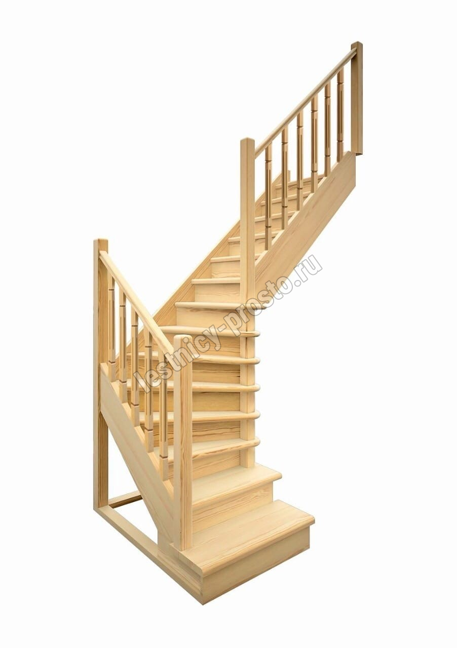 Деревянная межэтажная лестница ЛЕС-02, Сосна