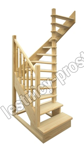 Деревянная межэтажная лестница ЛЕС-03 2525-2720 проем 1640-900, Сосна