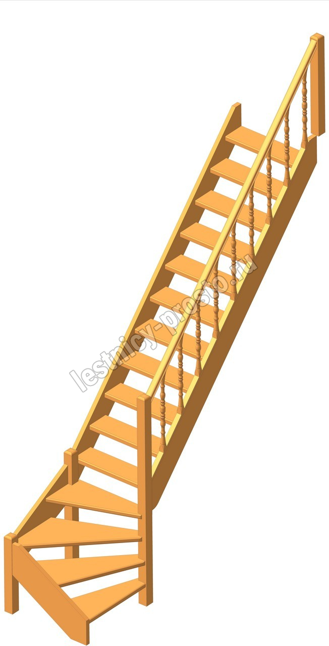 Деревянная межэтажная лестница ЛЕС-07 3085-3290 проем 2930-830, Бук
