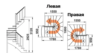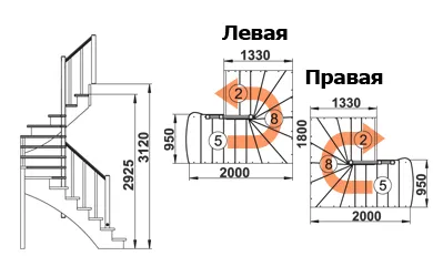 Базовая комплектация включает в себя элементы лестницы и ограждения без какого-либо покрытия. Ограждение можно заменить на любые по вашему вкусу (стоимость изменится).
