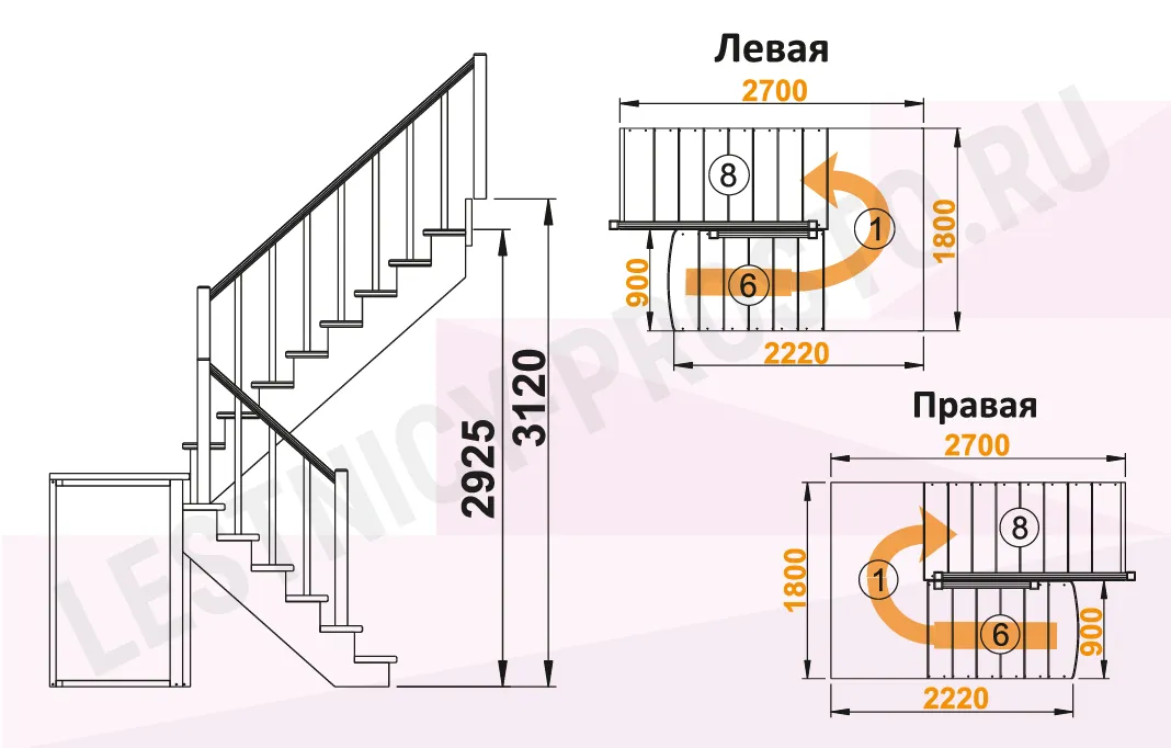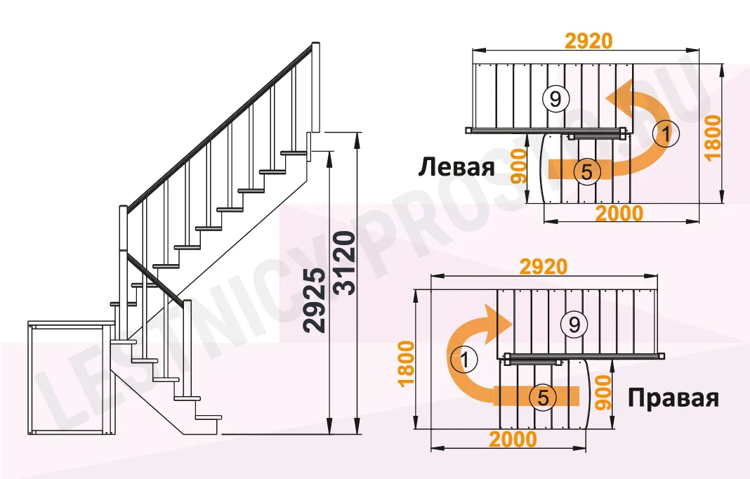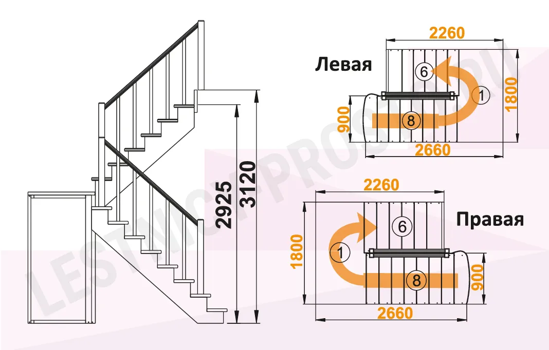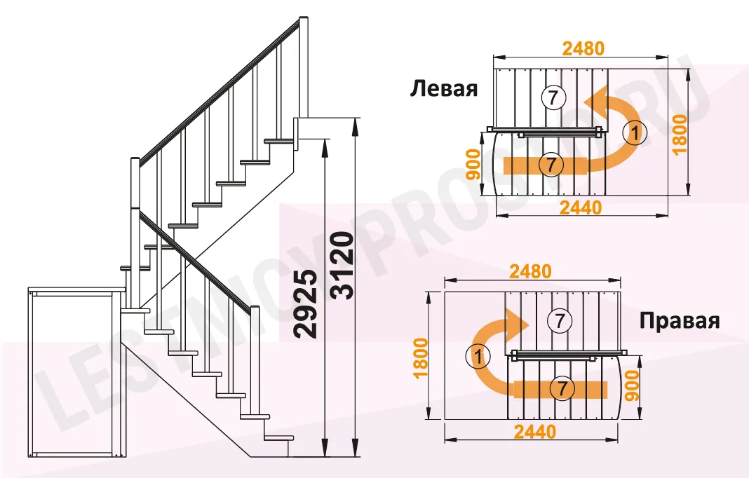Высота лестницы 2925 - 3120