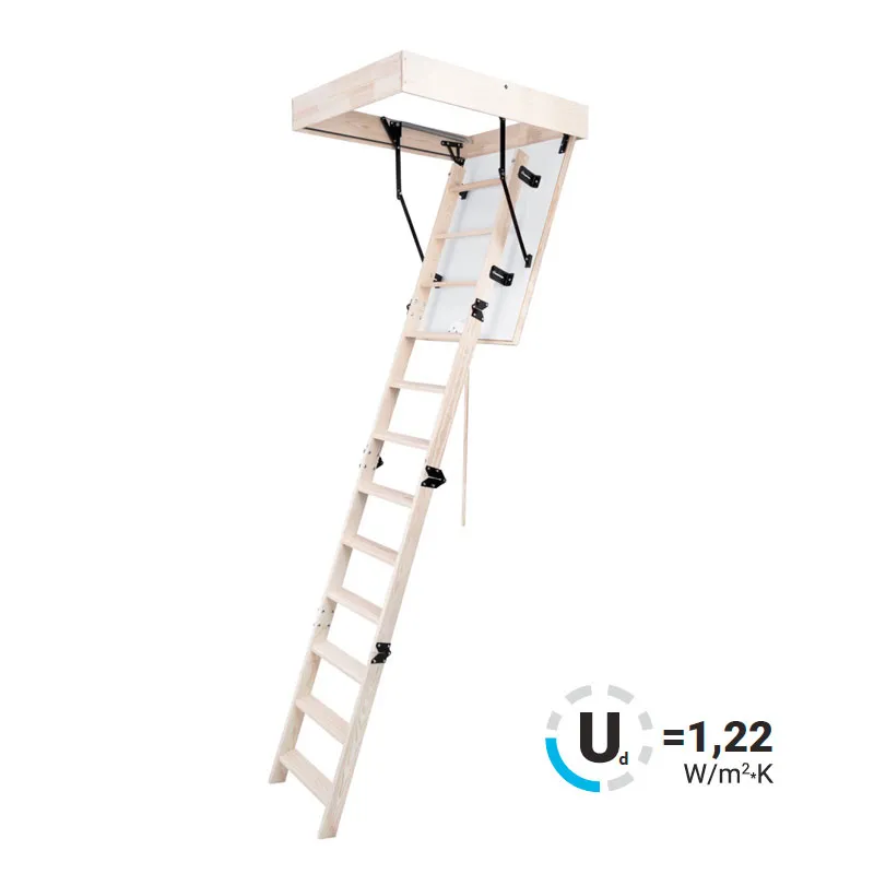 Увеличение высоты подъёма достигается добавлением подставки; уменьшение высоты достигается изъятием необходимого количества ступеней, начиная с верхней; точная подгонка по высоте за счет размера верхнего шага. Базовый комплект включает в себя деревянные элементы лестницы и ограждения без какого-либо покрытия.