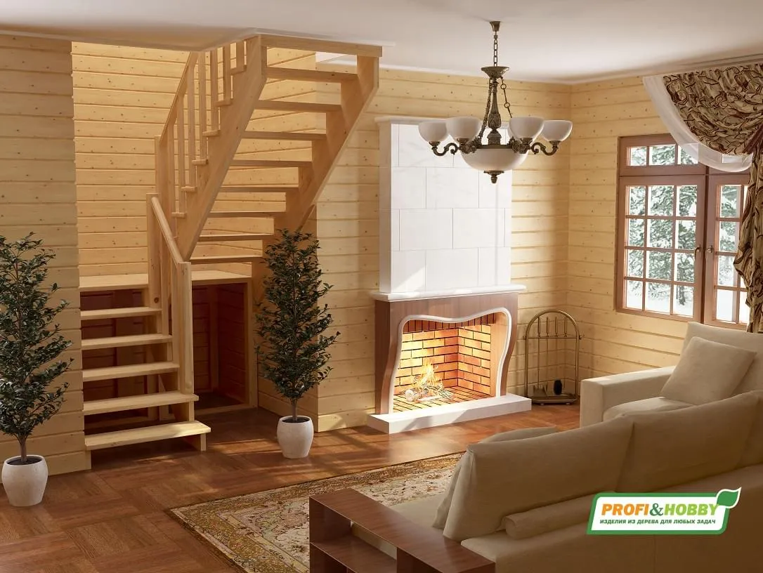 Ступени и поручень лестницы изготовлены из дуба, остальные элементы из сосны.