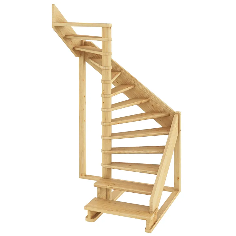Ступени и поручень лестницы изготовлены из сращенного дуба, остальные элементы лестницы (тетивы, столбы, балясины...) из массива сосны. Возможно изготовление данной модели полностью из дуба. Базовый комплект включает в себя деревянные элементы лестницы и ограждения без какого-либо покрытия. Вы можете заказать у нас покраску лестницы в цвета, отвечающие особенностям вашего помещения.