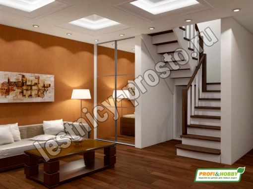 Лестница из сосны К-004М/1 с подступёнками под покраску