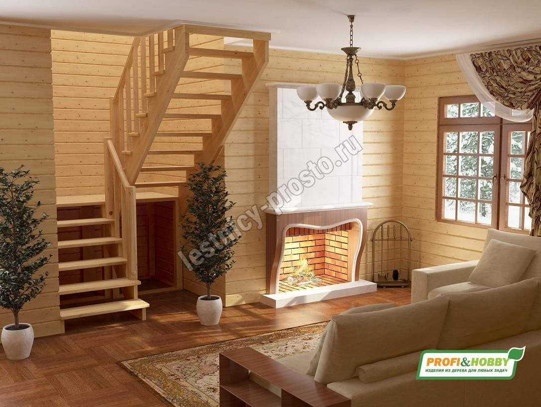 Лестница из сосны К-004М/4 с подступёнками