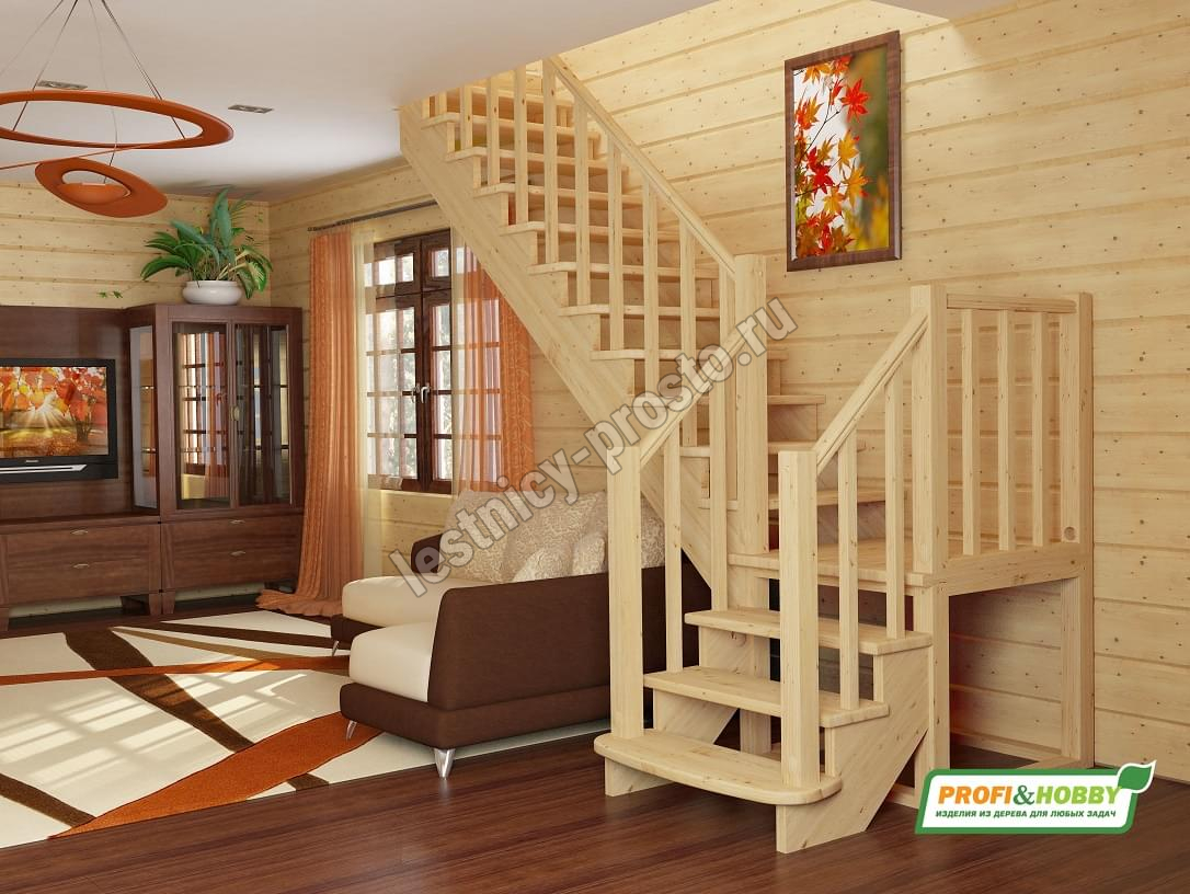 Лестница из сосны К-022М с подступёнками