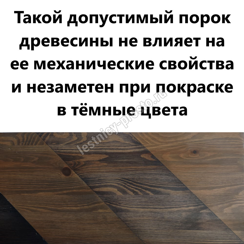 Обратите внимание! Данный вариант лестницы изготовлен из сосны эконом-класса, которая имеет местами видимые изменения цвета (в синий или серый) - это никак не отражается на прочности и надежности лестницы, но может быть заметно при прозрачных покрытиях или покраске в светлые цвета.
