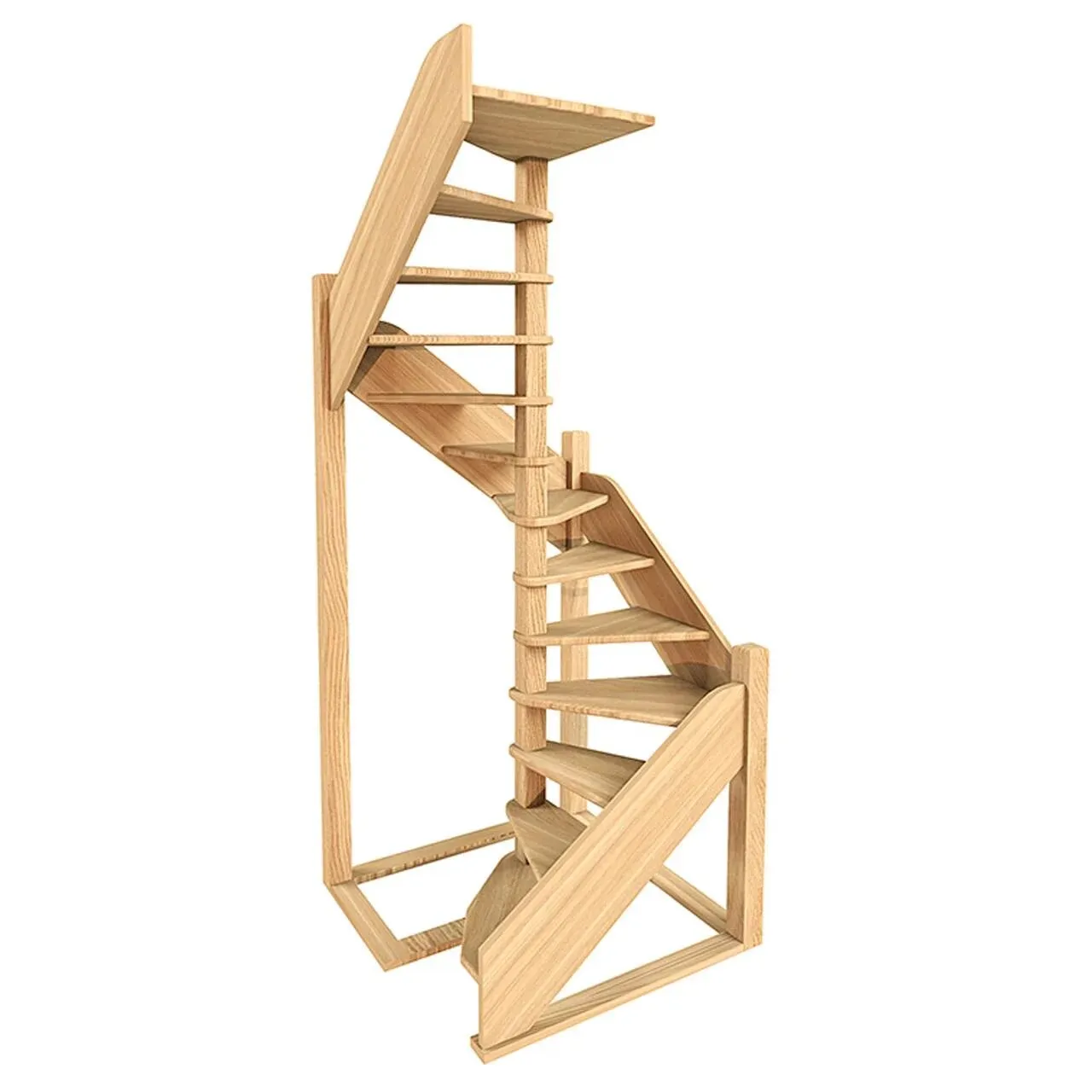 Ограждение лестницы с одной стороны. Базовый комплект включает в себя деревянные элементы лестницы и ограждения без какого-либо покрытия.