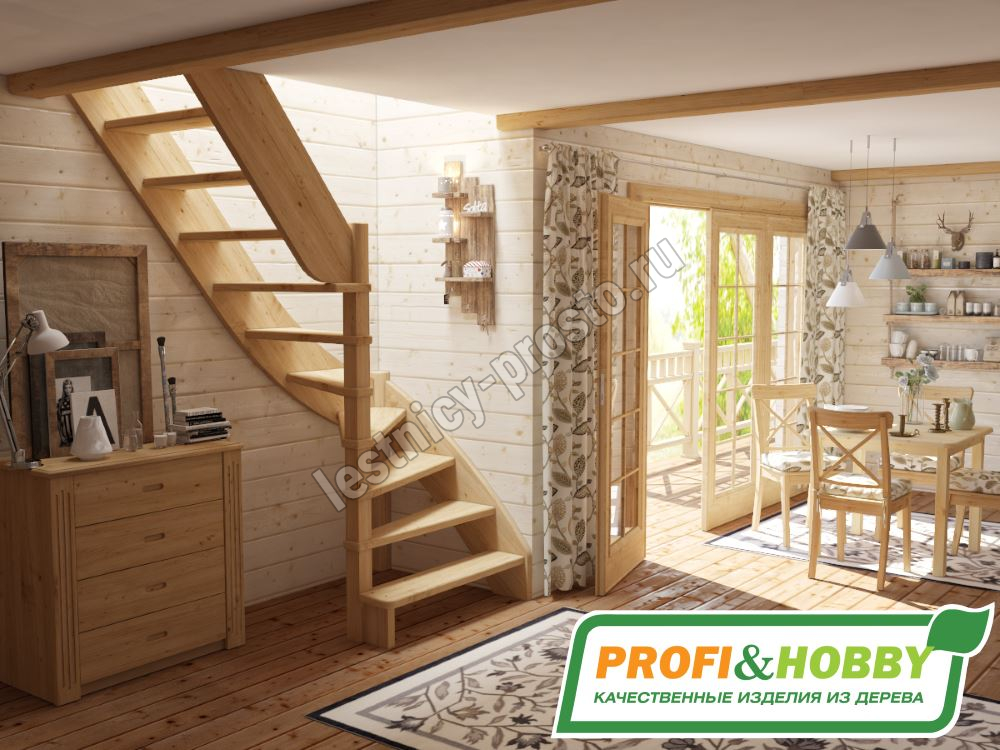 Базовый комплект включает в себя деревянные элементы лестницы без какого-либо покрытия.