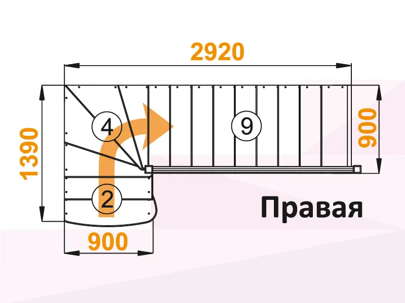 Лестница К-001М/3 с поворотом направо