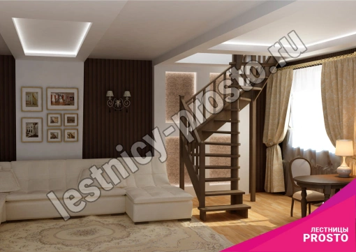 Данная лестница изготавливается под заказ в течении 4-5 недель. Возможно изготовление этой модели с другими размерами, подходящими под параметры вашего помещения. Базовое ограждение можно заменить на кованое или точеное. Ступени можно дополнить миниподступенями. Возможна установка лекальной (пригласительной) ступени. Стоимость указана без покраски/лакировки.