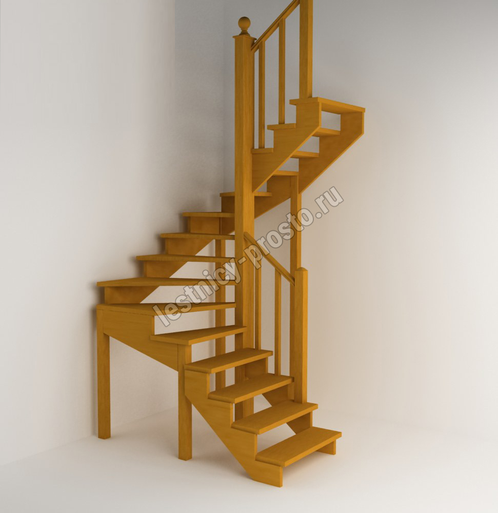 Лестница изготавливается под заказ. Возможны варианты подходящие под необходимые размеры проёма. Базовое ограждение можно заменить на кованое или точеное. Лестницу можно дополнить подступенями, бортиками, миниподступенями. Первую ступень можно заменить на пригласительную - лекальную. Классическая модель поворотной лестницы раскрывает всю природную красоту натуральных материалов. У лестницы комфортная высота шага, удобный широкий марш и угол подъема. Указана стоимость лестницы без какого-либо покрытия.
