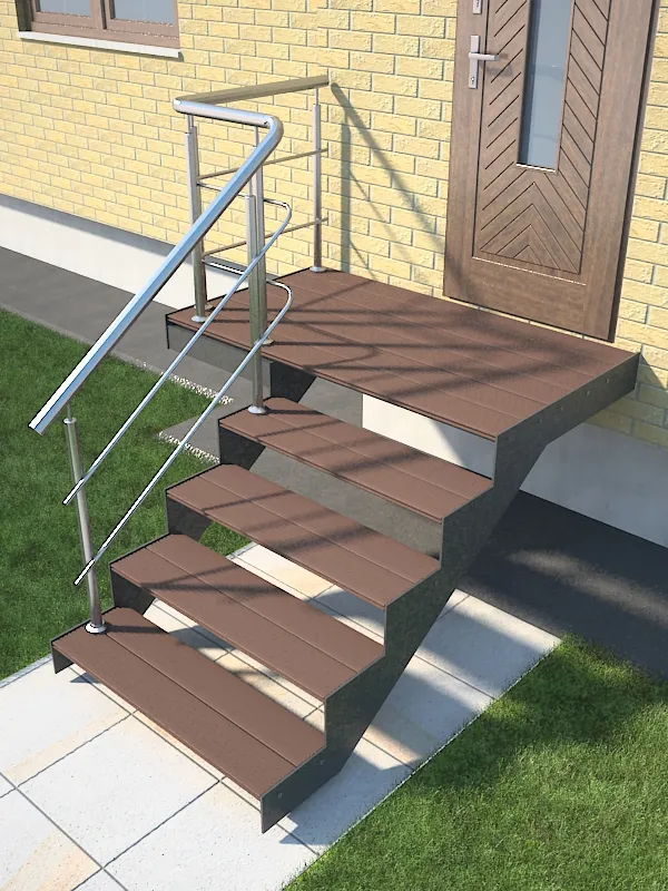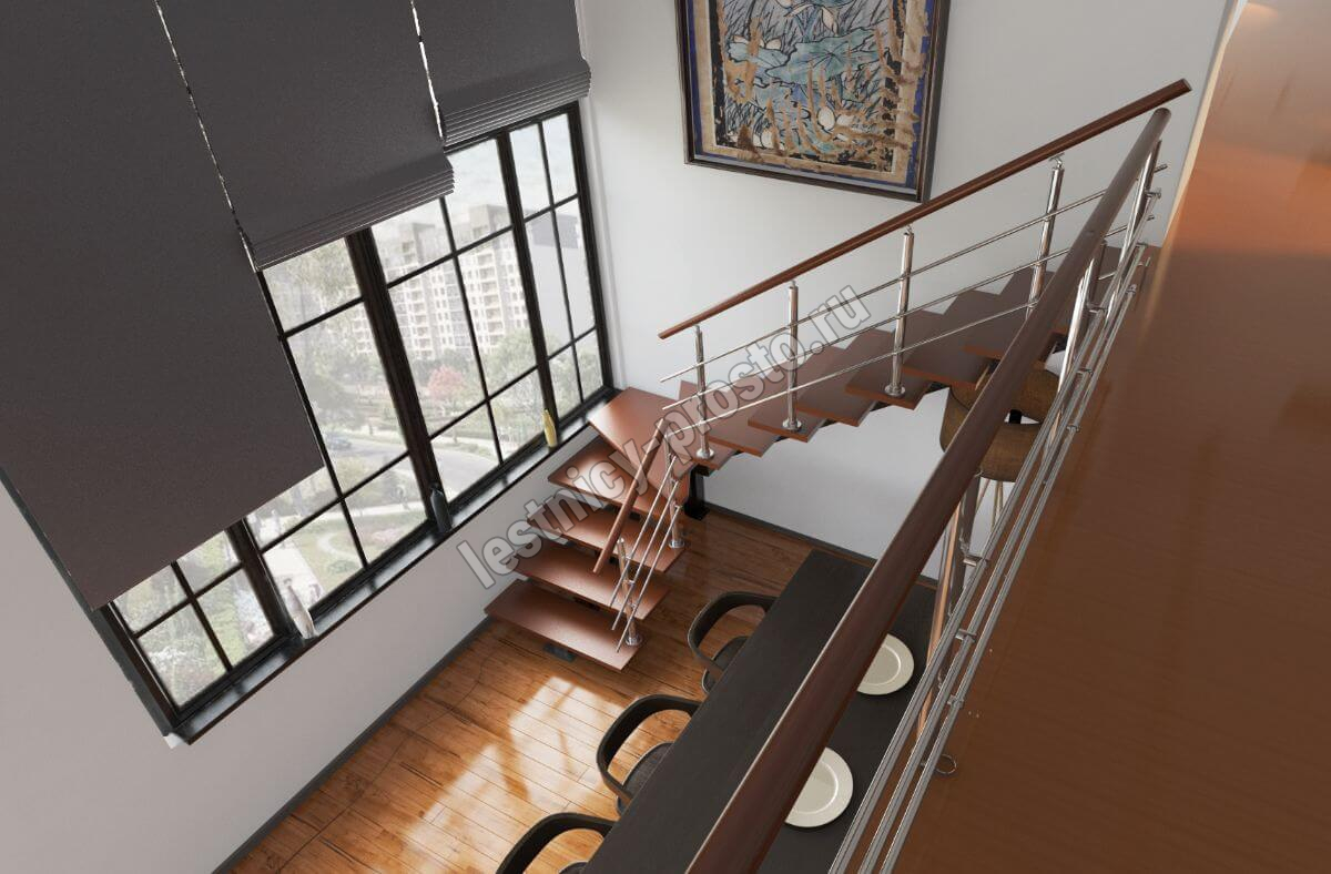 Комплект ограждений для П-образной лестницы PROSTO MONO из 8 ступеней.