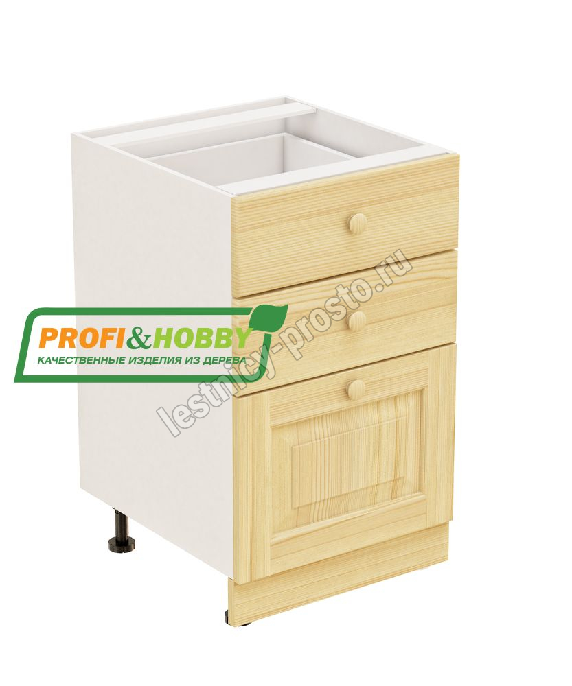 Тумба 3 ящика 500х530х720 + фасад сосна бесцветный акриловый лак