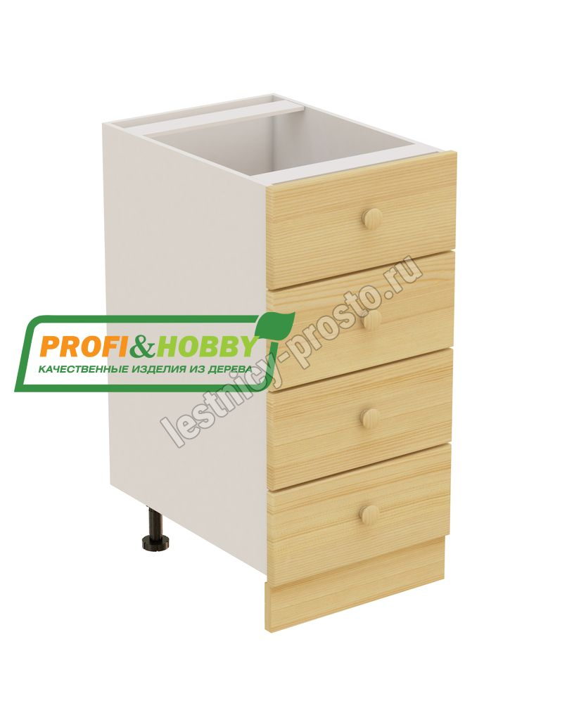 Тумба 4 ящика 400х530х720 + фасад сосна бесцветный акриловый лак