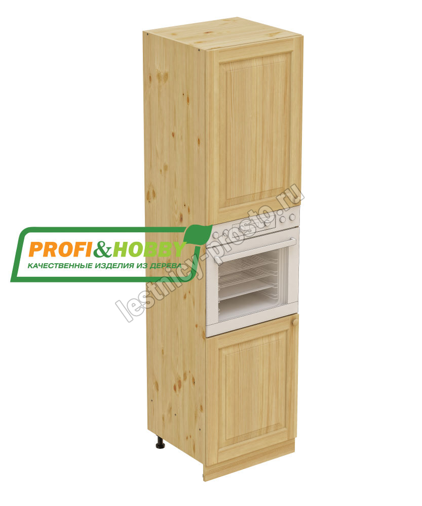 Шкаф высокий (пенал) изготовлен из 100% массива дерева, без шпона и без МДФ/ДСП.