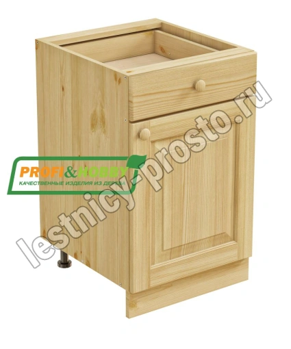 Тумба 1 дверь, 1 ящик 500 х 560 х 720 сосна, бесцветный акриловый лак