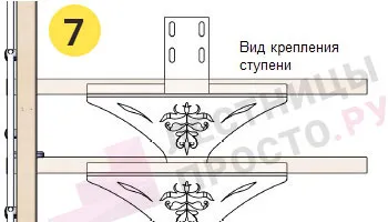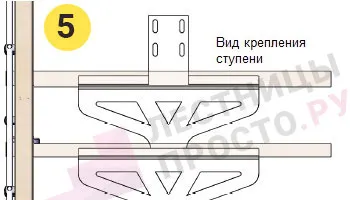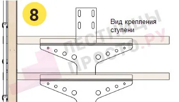 При заказе вы можете выбрать любой вид крепления ступеней из показанных ниже в блоке "Чертежи и схемы" (просто оформите заказ, мы позвоним вам для согласования заказа и спросим номер необходимого крепления).