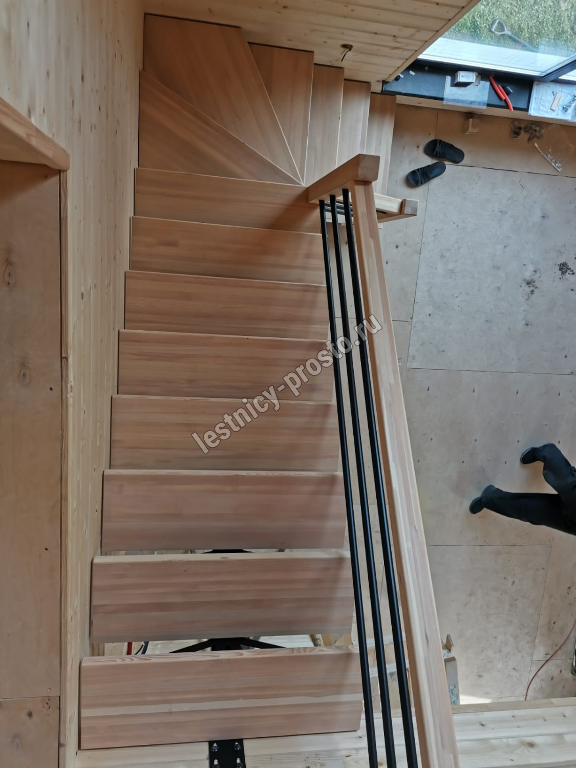 Ступени выполнены из срощенной берёзы.