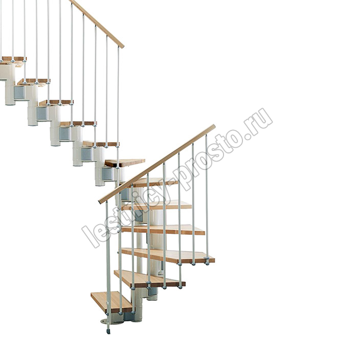 Красивая комфортная лестница с уникальной модульной конструкцией, которая позволяет собрать большое число модификаций, подходящих под ваш проём и другие условия помещения. Возможные варианты сборки лестницы смотрите в блоке "чертежи и схемы". При монтаже модульной лестницы KOMPACT, вы можете варьировать высоту шага и проступь, получив точную необходимую высоту и габариты. Лестница KOMPACT возможна в двух вариантах: с шириной марша 740 мм и 890 мм. Ступени выполнены из массива бука и покрыты качественным износостойким лаком. Базовая комплектация позволяет получить лестницу под высоты этажа в диапазоне 2250 - 3030 мм, кроме того, установив дополнительный комплект увеличения высоты, можно поднять высоту лестницы до 3730 мм. Каркас и стойки ограждения выполнены из пластифицированного металла.