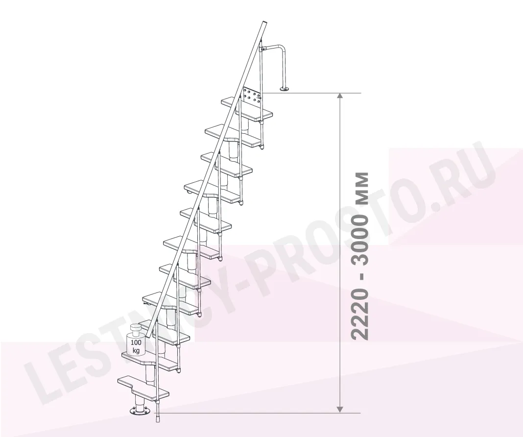 Высота лестницы 2220 - 3000 мм