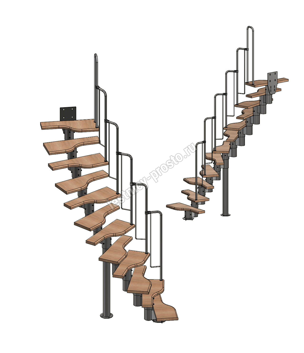 Лестница Prosto Urban Black гусиный шаг 700 мм, h216-312 см (12 ступеней), бук