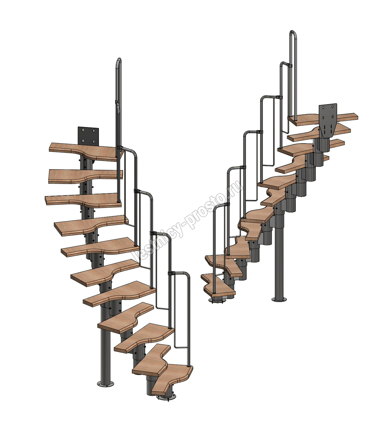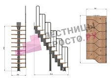 Лестница Prosto Urban Black гусиный шаг 700 мм, h198-288 см (11 ступеней), берёза мультиплекс