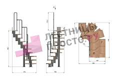 Лестница Prosto Urban Black гусиный шаг 600 мм, h180-264 см (10 ступеней), бук