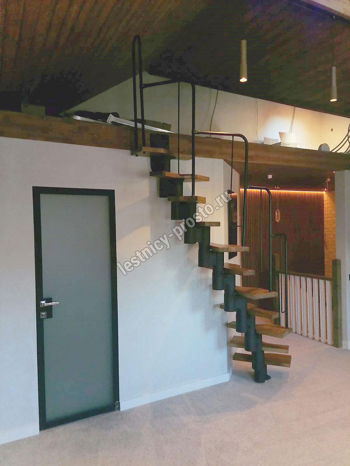 Лестница Prosto Urban Black гусиный шаг 600 мм, h180-264 см (10 ступеней), ясень