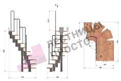 | Лестница Prosto Urban Grey г-образная гусиный шаг 600 мм, h198-288 см (11 ступеней) |