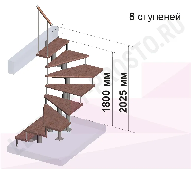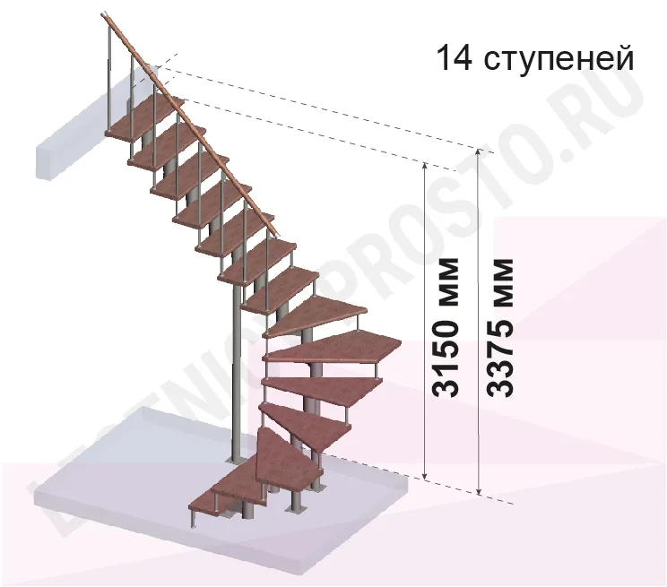 Количество ступеней до поворота - может быть любым , по запросу мы рассчитаем стоимость и сделаем чертеж-схему в соответствии с вашими параметрами. Так же, поворот лестницы может быть реализован через площадку. Звоните и пишите нам по всем возникающим вопросам: мы профессионалы в области лестниц и поможем правильно сориентироваться, не совершив ошибок!