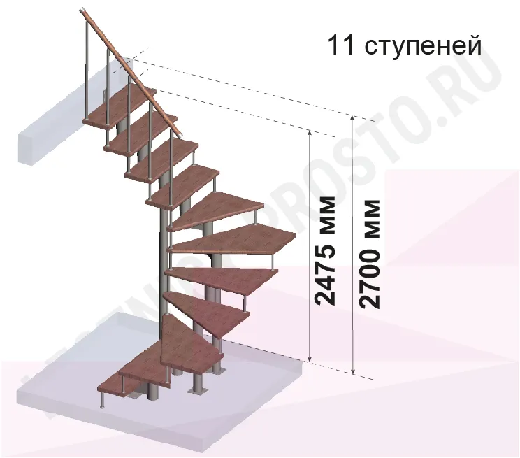 | Модульная лестница PROSTO MODULE п-образная, h270, хвоя |