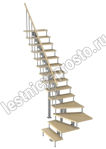 Модульная лестница Фаворит 180 2520-2660, Серый, Сосна, Крашеная