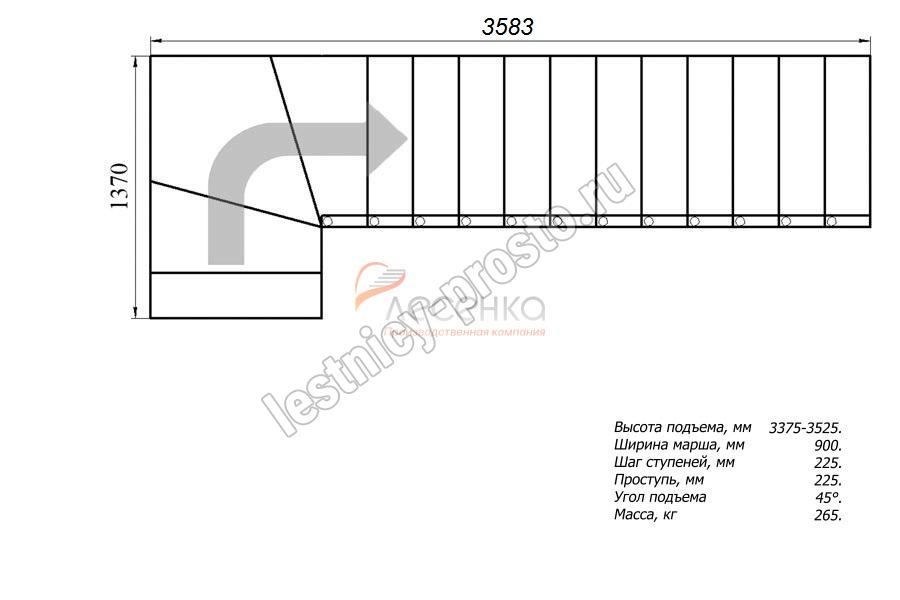 Модульная лестница Фаворит 225 3375-3525, Серый, Лиственница, Нержавеющая сталь