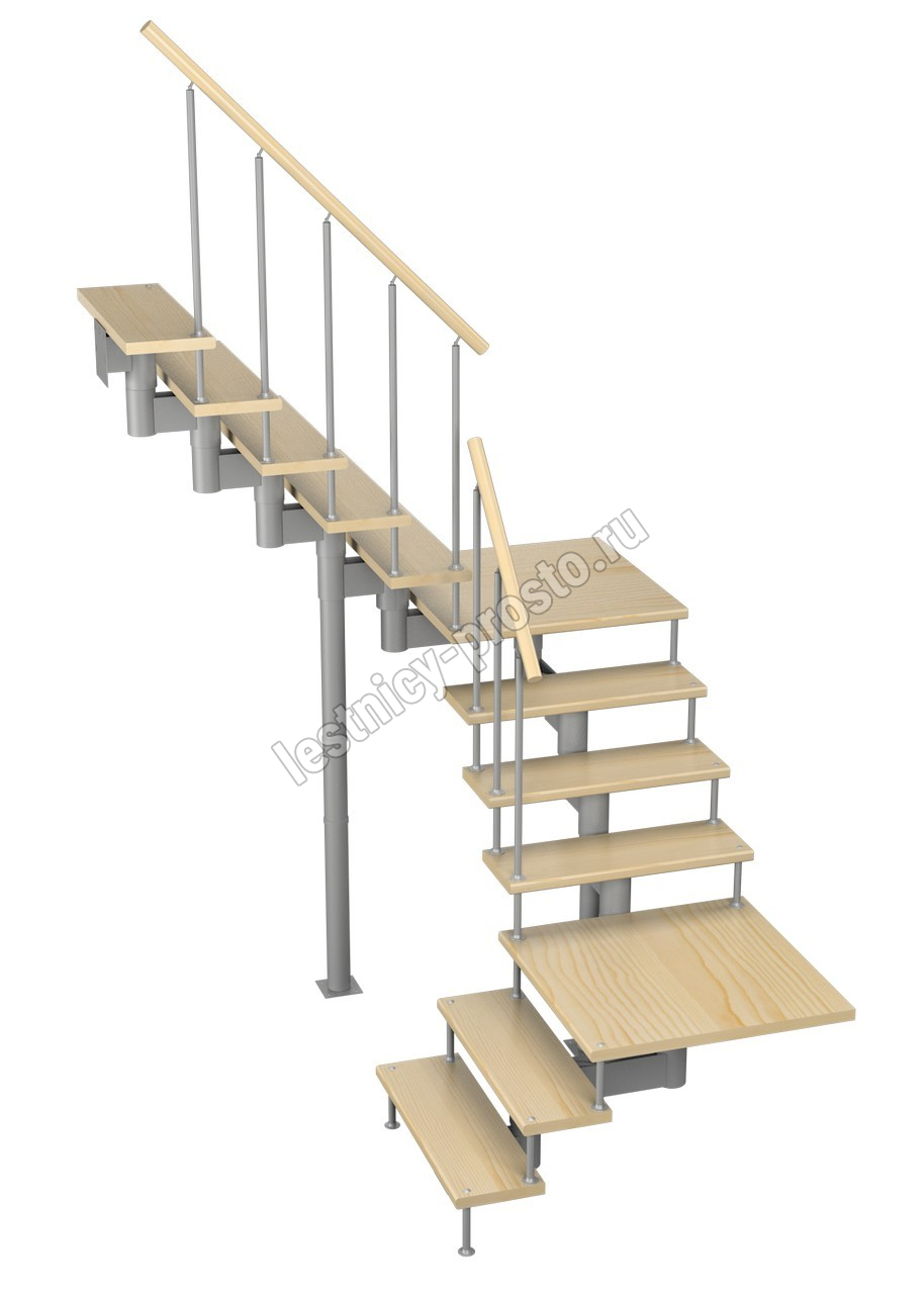 Модульная лестница Комфорт 225 2700-2820, Серый, Сосна, Нержавеющая сталь