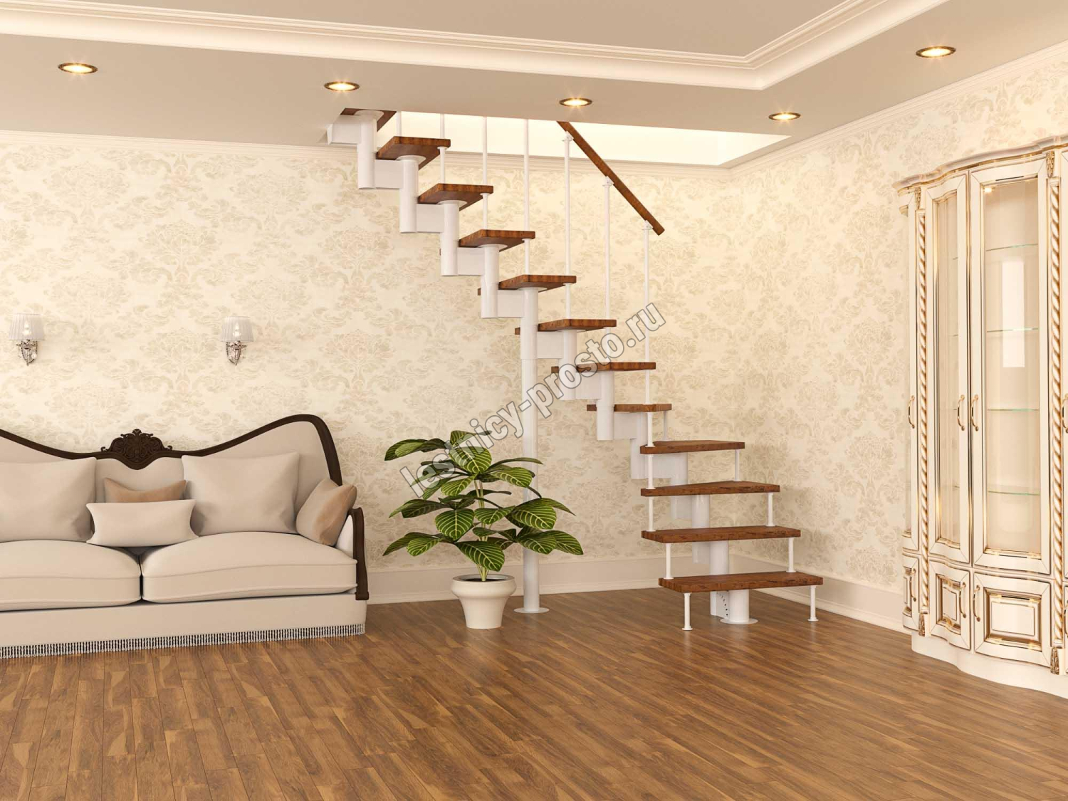 Модульная лестница PROSTO MODULE Г-образная, h202.5, лиственница