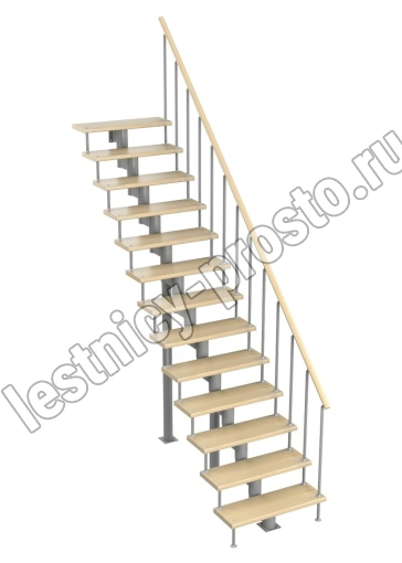 Модульная лестница Стандарт 3150-3290, Серый, Сосна, Нержавеющая сталь