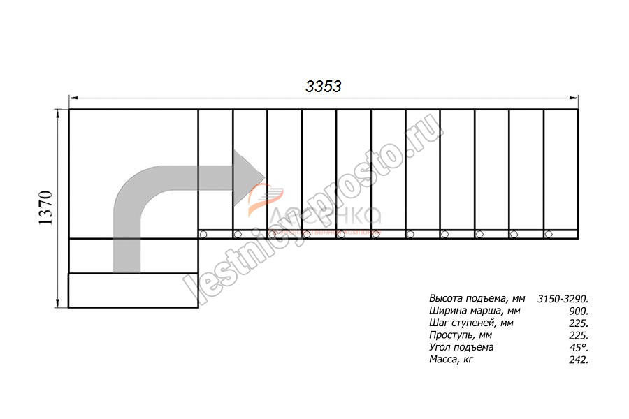 Модульная лестница Статус 225 3150-3290, Серый, Бук, Крашеная