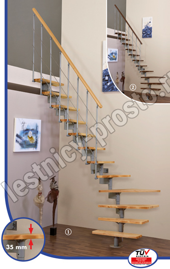 Возможно несколько вариантов сборки лестницы. По запросу - прямая модель. Высота шага регулируется при сборке.