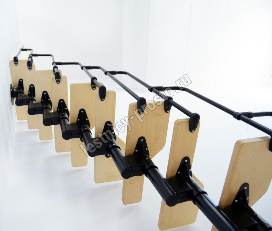 Ступени изготовлены из очень прочной покрытой лаком фанеры толщиной 30 мм.