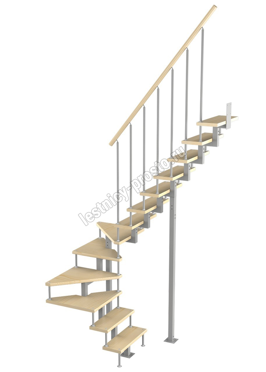 Модульная малогабаритная лестница Эксклюзив 2925-3150, Серый, Сосна, Крашеная