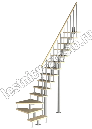 Модульная малогабаритная лестница Компакт 3150-3375, Серый, Сосна, Нержавеющая сталь