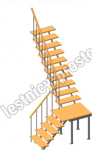 Комбинированная межэтажная лестница ЛЕС-05-3 (поворот 90°, h 3 м), Сосна
