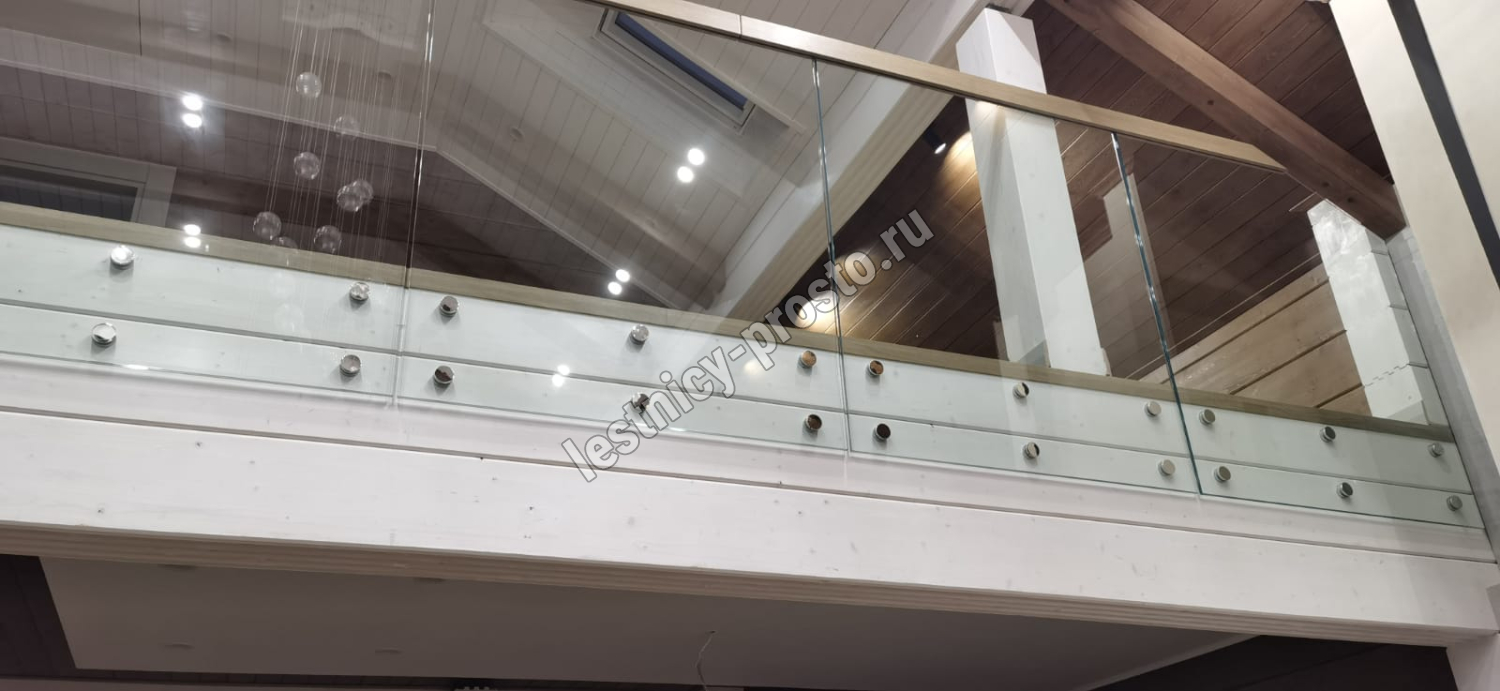 Ограждение из ударопрочного стекла и ясеня.